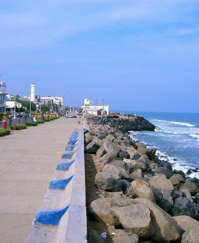 The city’s famous beachfront, perfect for sunrise strolls, evening leisure, and soaking in Pondicherry’s coastal charm.